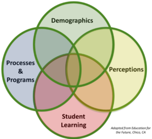 Victoria Bernhardt introduced the model in her 1998 book Data Analysis for Comprehensive Schoolwide Improvement and refined it in works like her 2000 article “Multiple Measures.” It is designed for practical use in schools, predicting actions that meet all students’ needs by categorizing data into four types – Demographics, Perceptions, Student Learning, School Processes – and intersects them for quick, actionable insights.